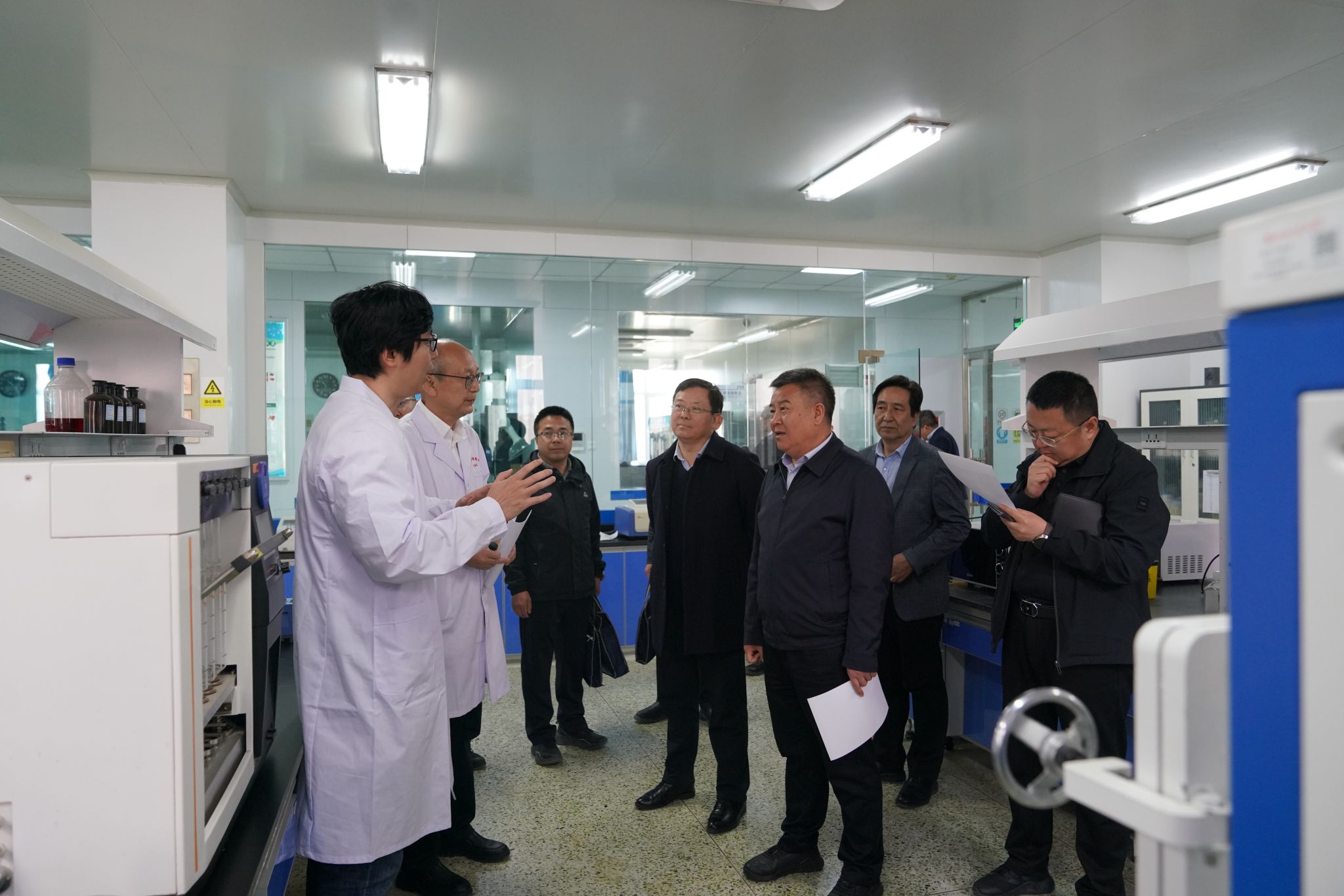 座谈会后,芮文刚一行参观了学校生物医学研究中心,全面了解生物制药与材料工程相关研究成果。学校办公室、科研处、生物医学研究中心负责人参加交流活动。
