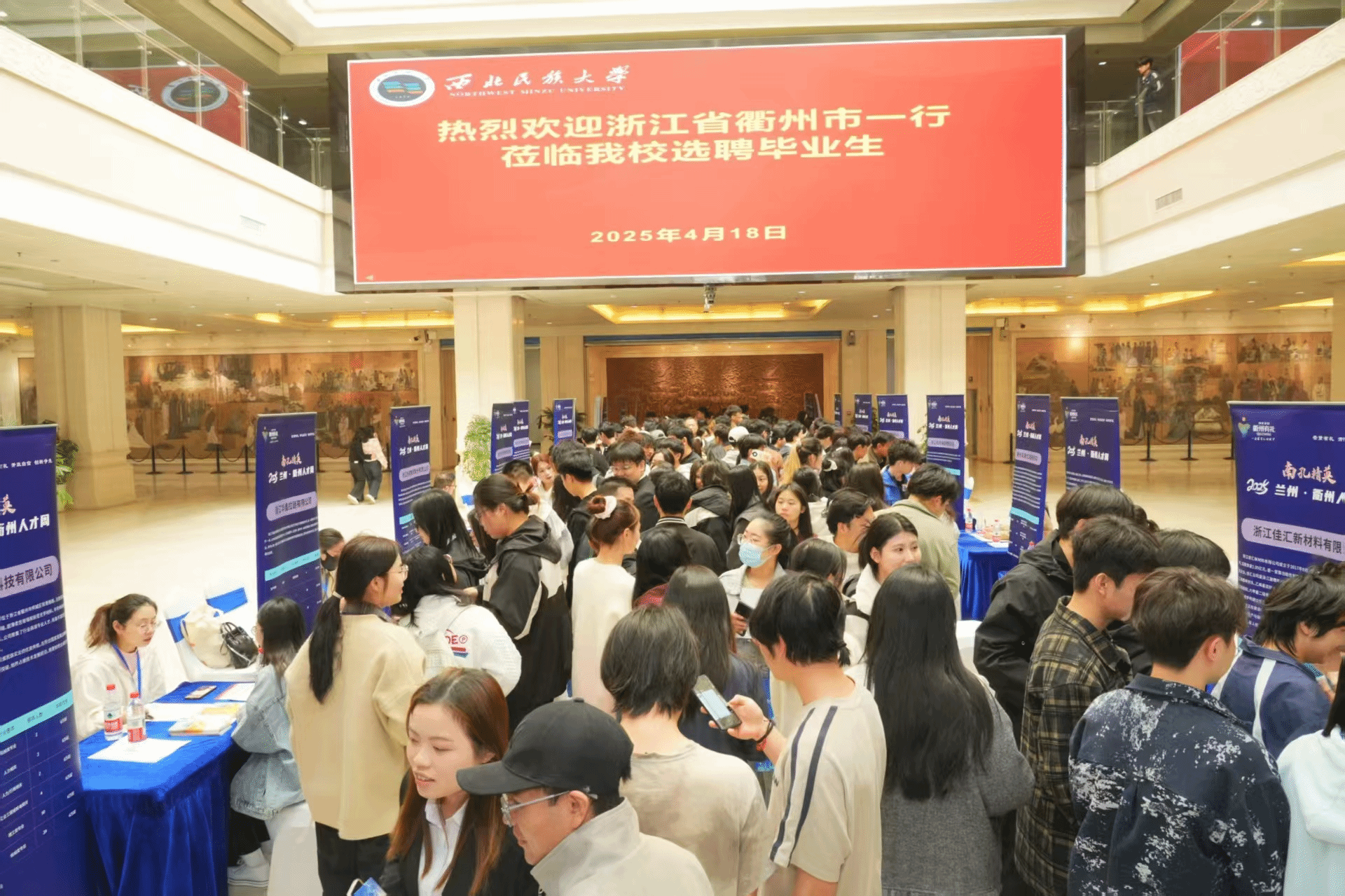 4月18日,“南孔精英 为你而来”2025兰州˙衢州人才周双选会在榆中校区举办。学校党委书记张俊豪,党委常委、副校长徐绍文,衢州市智造新城管委会、经信局、教育局、人社局、人才科创集团等相关领导出席,学生工作部、各培养单位相关负责人及2000余名毕业生参加双选会。
