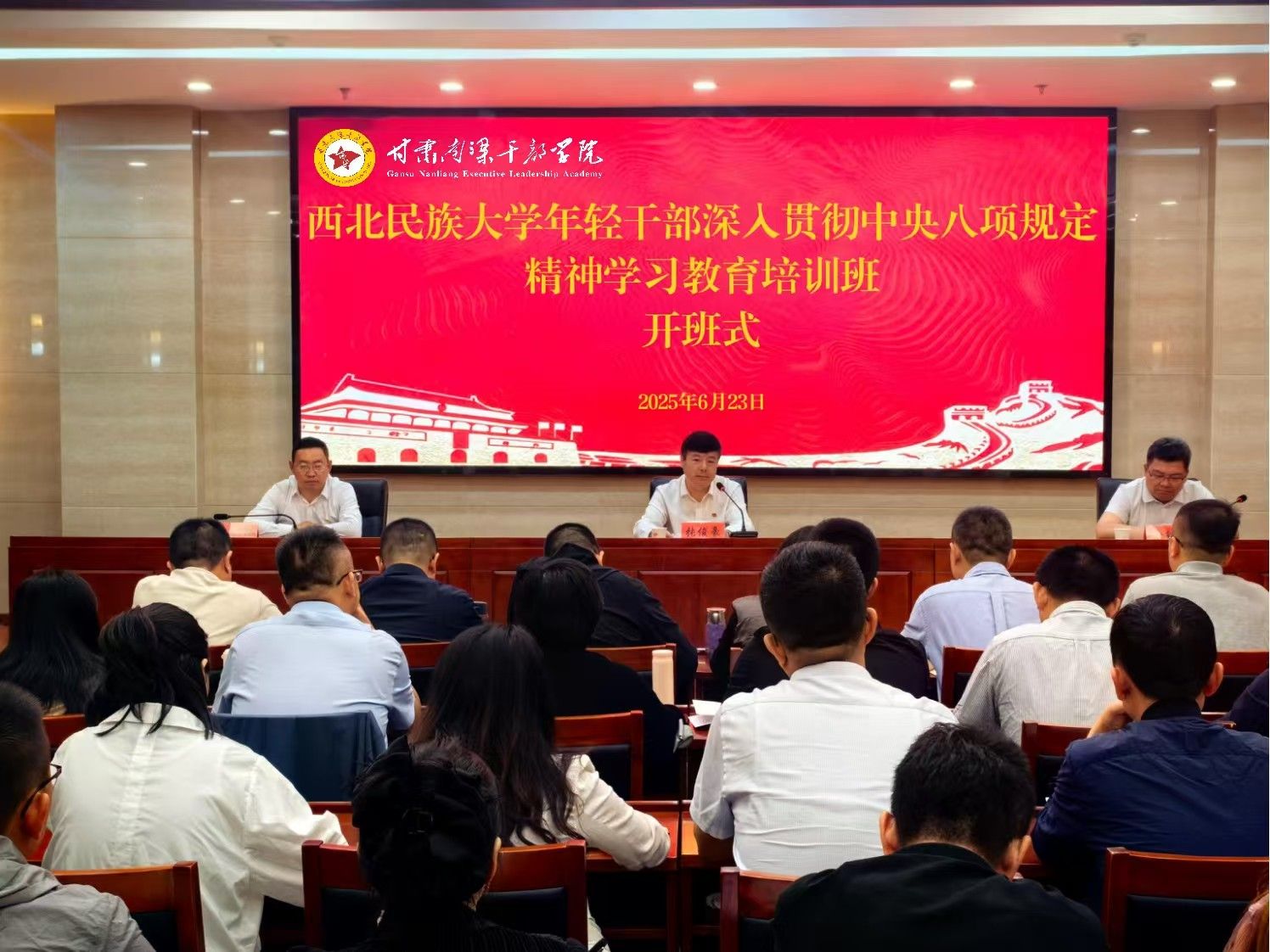 6月23日,学校年轻干部深入贯彻中央八项规定精神学习教育培训班在南梁干部学院开班。学校党委书记张俊豪出席开班式并讲话。校党委常委、副校长徐绍文主持开班式,南梁干部学院副院长张全钰出席并致辞,学校40余名年轻干部参加培训班学习。