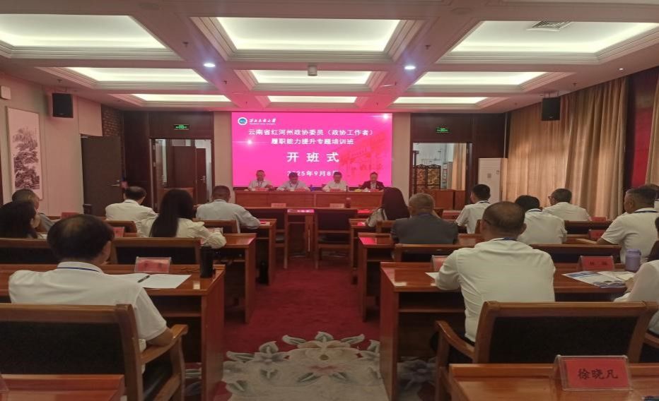 9月8日,2025年度云南省红河州政协委员(政协工作者)履职能力提升专题培训班(第1期)在我校开班。云南省红河州政协党组副书记、一级巡视员孔令清,州政协副主席、州工商联主席李满,学校党委常委、副校长景兆玺及学校继续教育学院相关负责人参加开班式。